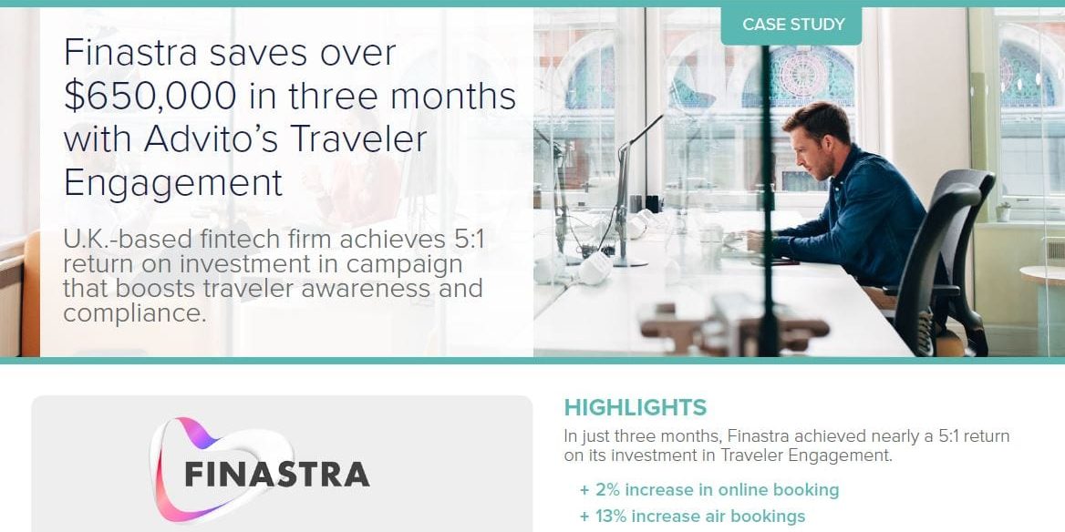 Finastra saves over $650,000 in three months with Advito’s Traveler Engagement